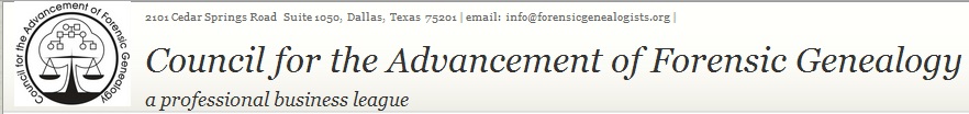 Looking ahead, 2015 is a milestone year and I hope you are making plans for the myriad of events that will unfold. I hope next year to attend the Forensic Genealogy Institute that is currently underway in Texas right now. This is sponsored by the Council for the Advancement of Forensic Genealogy. I hope to attend that institute next year.